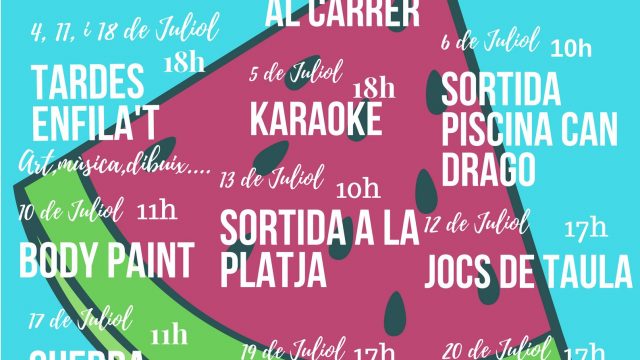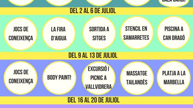 Durant quatre setmanes farem moltes activitats on ens podràs acompanyar. Per tal que et facis una petita idea…