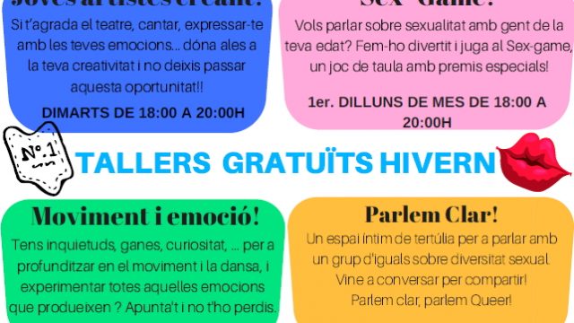 Tallers gratuïts per aprendre més sobre tu mateix/a, adquirir noves habilitats, treballar l’autoestima, l’assertivitat i compartir experiències amb altres joves des dels temes que més t’interessen, vine a proposar-los!…