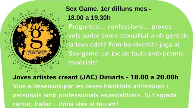 Ja podeu consultar les activitats que es realitzaran al llarg dels propers mesos d’abril, maig i juny a la nova agenda d’activitats de l’Espai Jove Garcilaso!